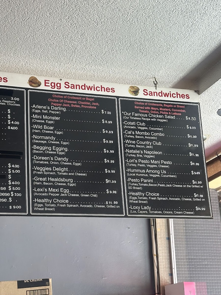 Additionally, the menu includes various coffee and espresso drinks, consistent with the café and diner setting. Customers often utilize the menu for quick breakfast orders or casual dine-in meals throughout the day.